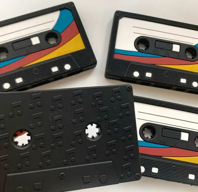Gummy Chic è una piccola azienda familiare degli Stati Uniti che realizza e produce Massaggiagengive in silicone. Tutti i loro fantastici prodotti sono testati ed approvati dalla CPSC (Consumer Product Safety Commission), la Commissione degli Stati Uniti che si occupa della sicurezza dei beni di consumo. Sono realizzati con silicone alimentare della migliore qualità. Senza utilizzo di BPA, ftalati, cadmio, piombo e senza metalli pesanti. Sono inodore ed insapore. Possono essere messi nel freezer, si lavano con acqua e sapone. MUSICASSETTA colore Nero, Limited Edition. Qui nella versione con CATENELLA e clip.